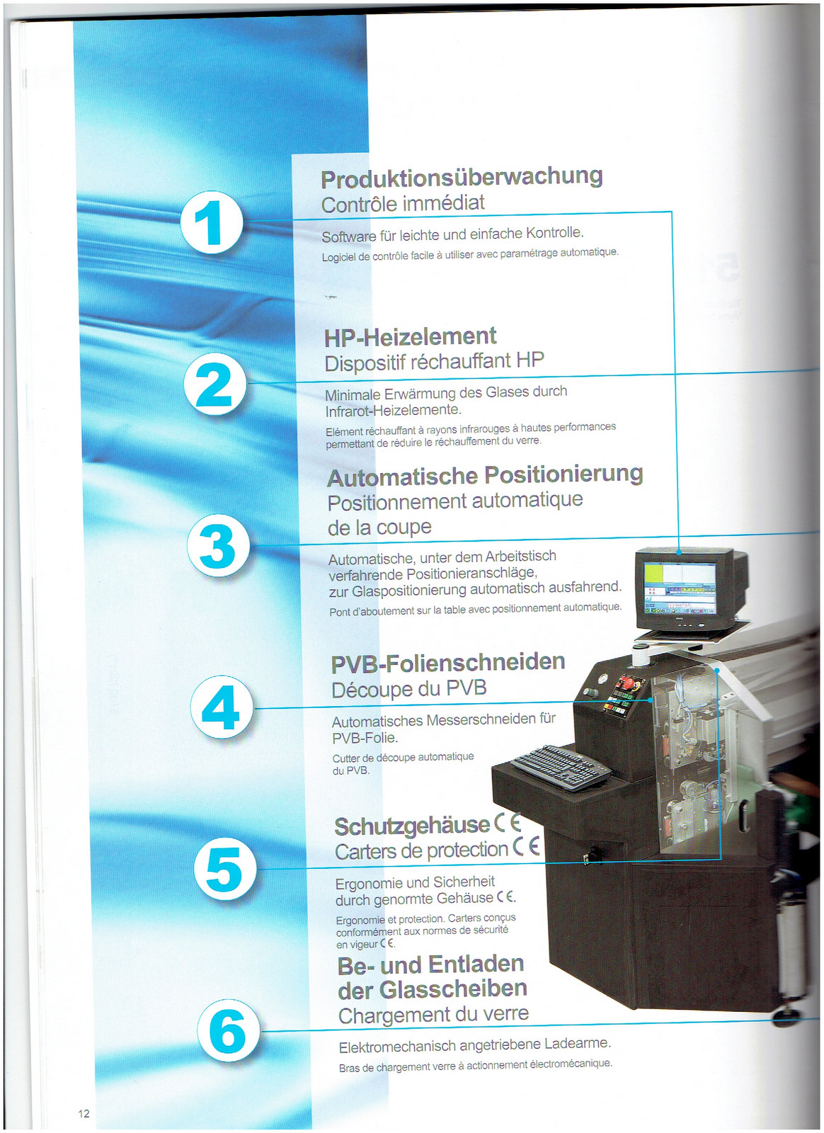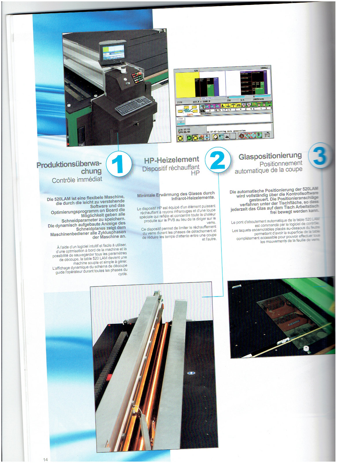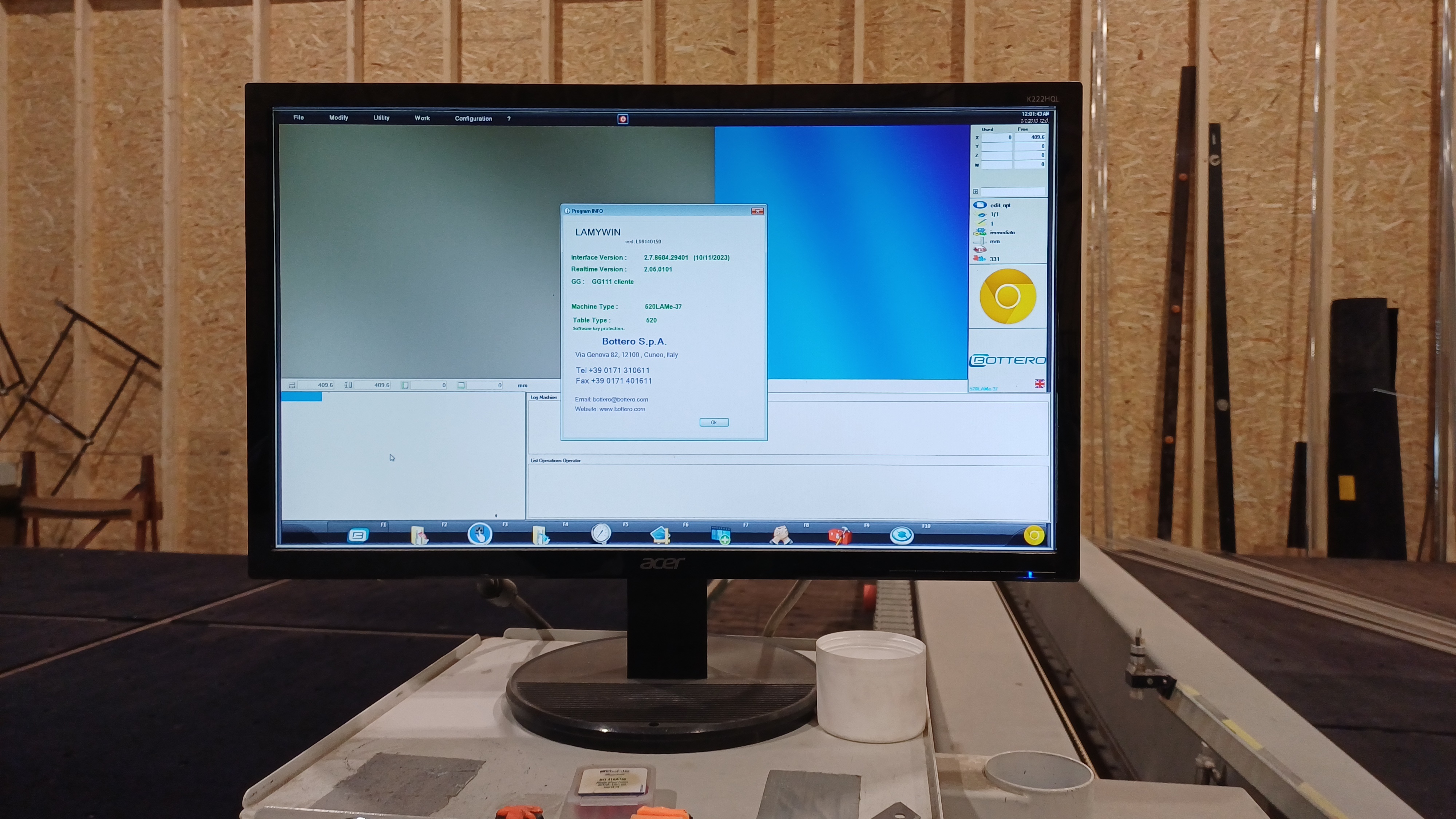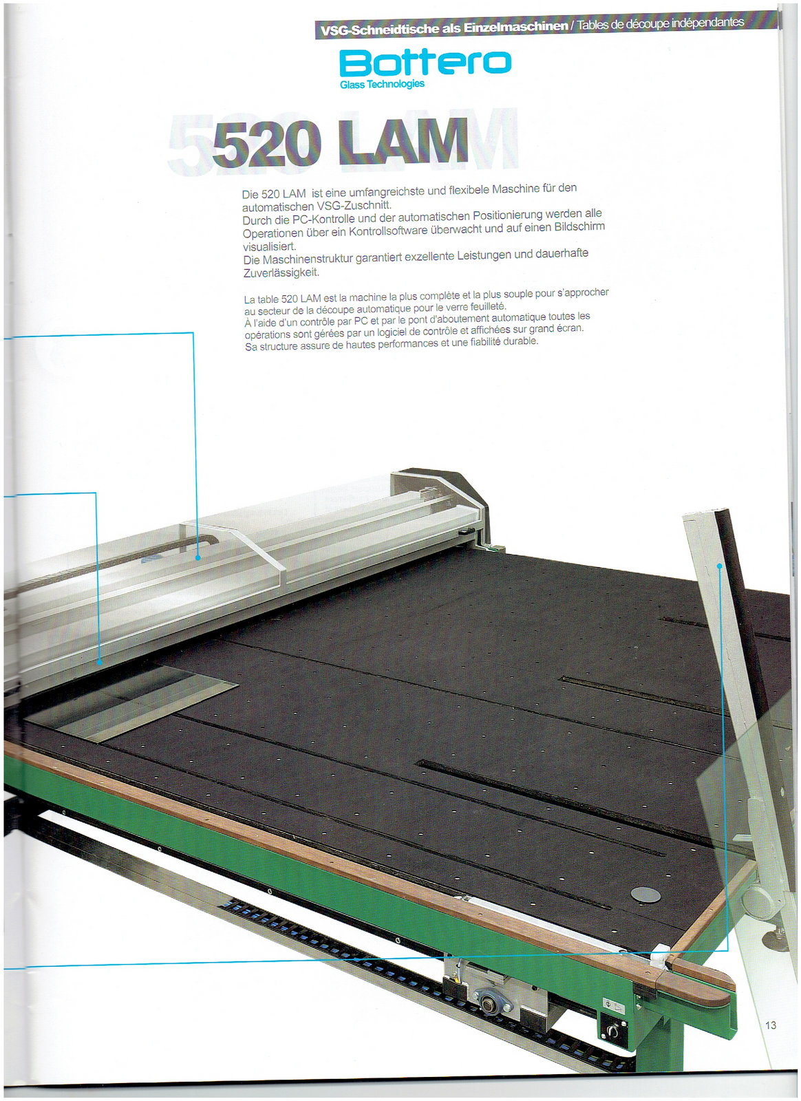 For sale the BOTTERO laminated glass cutting table with up-date program from 2023 with LamiWin with optimizator Win-Opty, model 520 LAM/37, year 2007