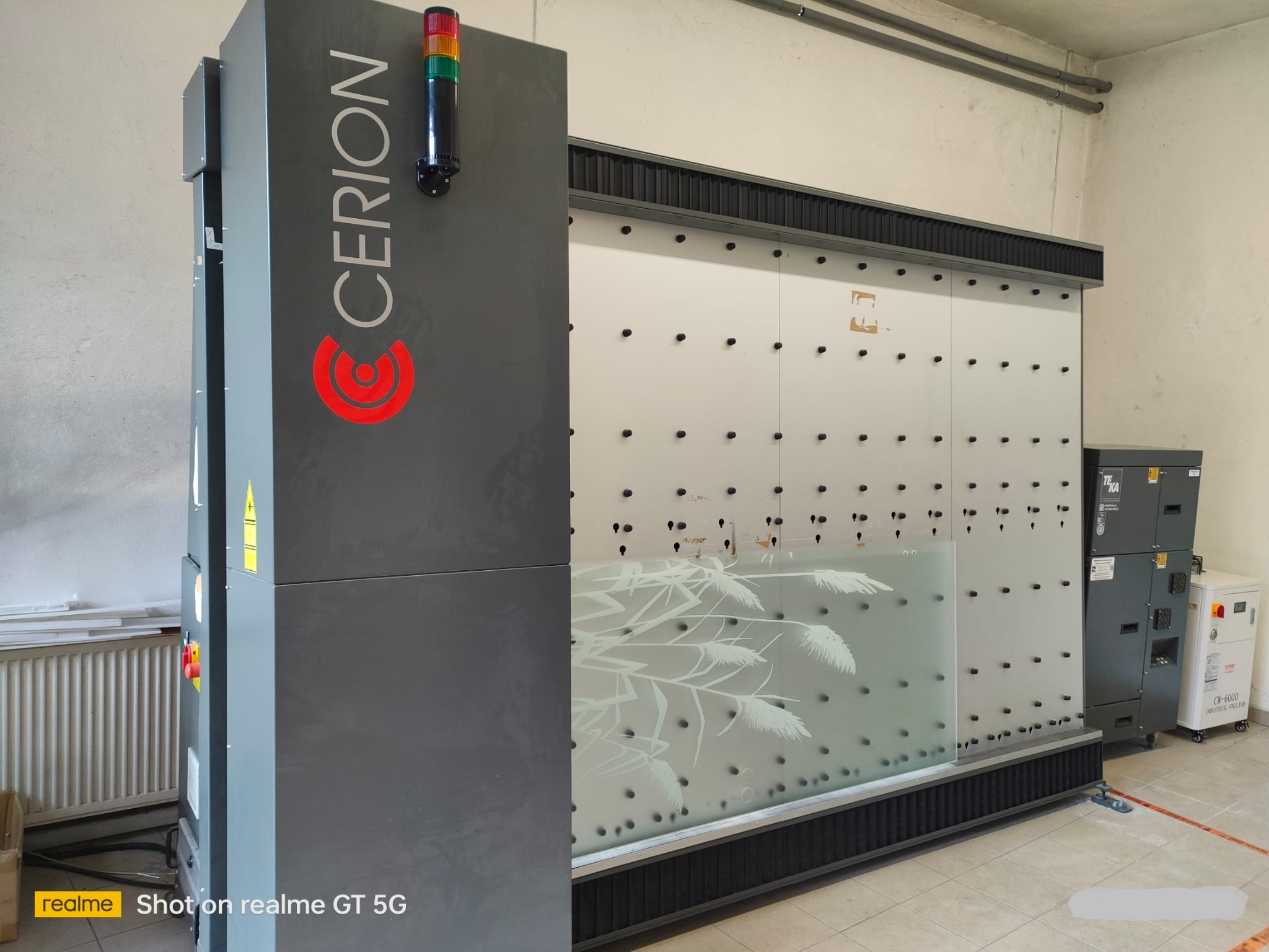 For sale the vertical laser engraving machine CERION LASER GmbH ( GERMANY ) for glass , mirror and acrylic , type: C-vertica, Year: 2016 in excellent working condition, as NEW !