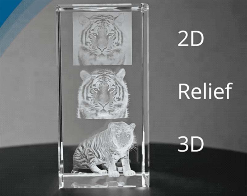 The c-vertica enables the processing of glass surfaces with unique structures and motifs, and the laser engraving of two-and three-dimensional designs inside and onto glass with just one machine.